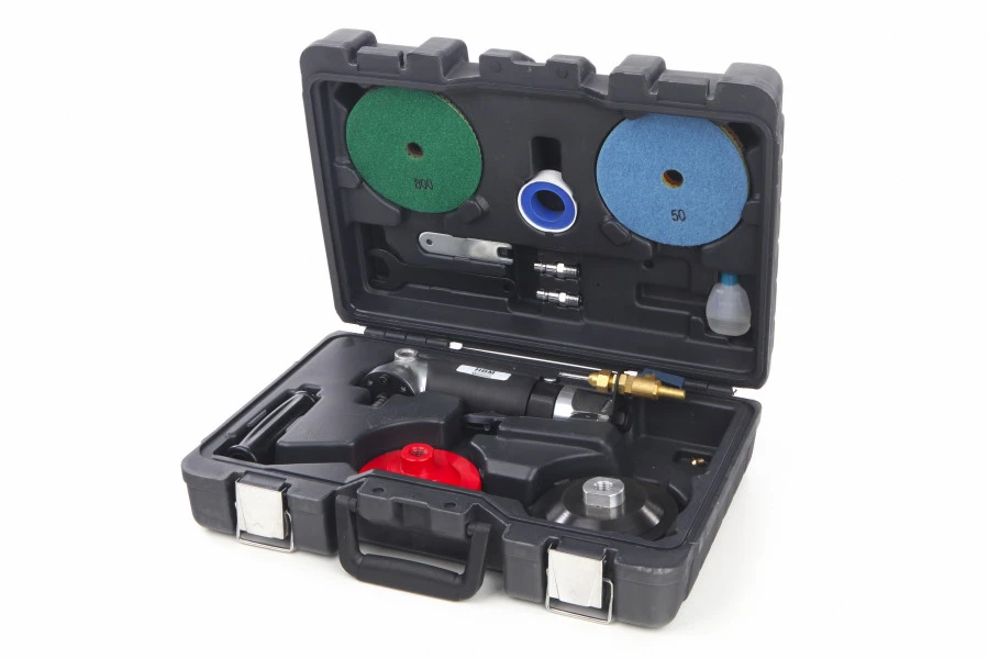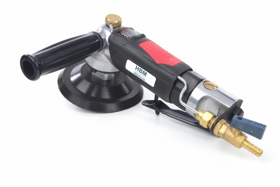 Deze HBM natte schuur- en polijstmachine is gemaakt voor professioneel gebruik, maar kan natuurlijk ook goed gebruikt worden door de ervaren doe-het-zelver. Deze professionele polijst- en schuurmachine wordt als complete set geleverd met polijst- en schuurpads en aansluitnippels. Met deze natte schuur- en polijstmachine heb je geen last van rondvliegend stof dat kan worden ingeademd. De machine wordt aangedreven met perslucht en dat is wel zo veilig als je nat aan het schuren en polijsten bent.