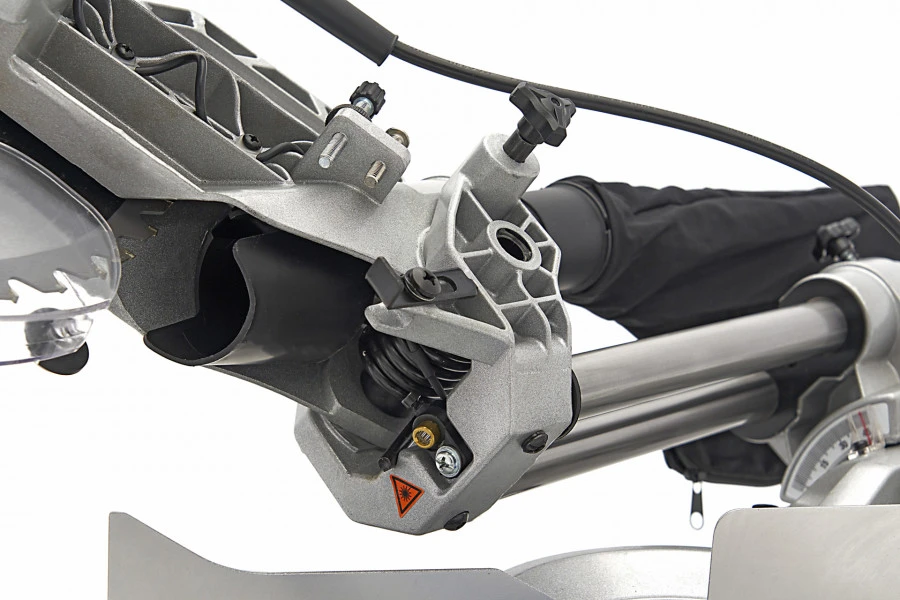 De afkortzaag kan in het horizontale vlak worden schuin gezet voor verstekzagen van -45- tot +45°. Deze hoeken zijn onderverdeeld in stops van 15°voor een snelle hoekinstelling. In het verticale vlak kan de zaag 45° naar links gekanteld worden, hetgeen zelfs dubbel verstekzagen mogelijk maakt. Alle assen zijn vergrendelbaar. De zaagdiepte is instelbaar middels een aanslag. De lijnlaser onderaan de trekarm toont waar de zaagsnede zal gaan komen. De beschermkap klapt automatisch op.