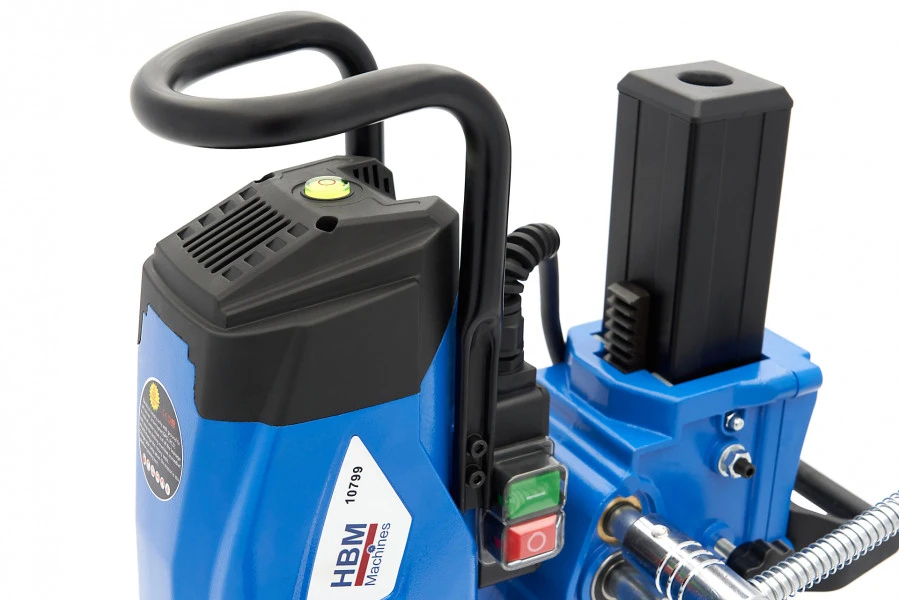 Met deze robuuste, gestroomlijnde boormachine is het boren van hard plaatmateriaal en andere werkstukken geen enkele uitdaging. Het systeem staat op een stevige, metalen basis die je snel en veilig bevestigt op het te bewerken oppervlak. Daarbij is de bediening eenvoudig dankzij de lange hendels.