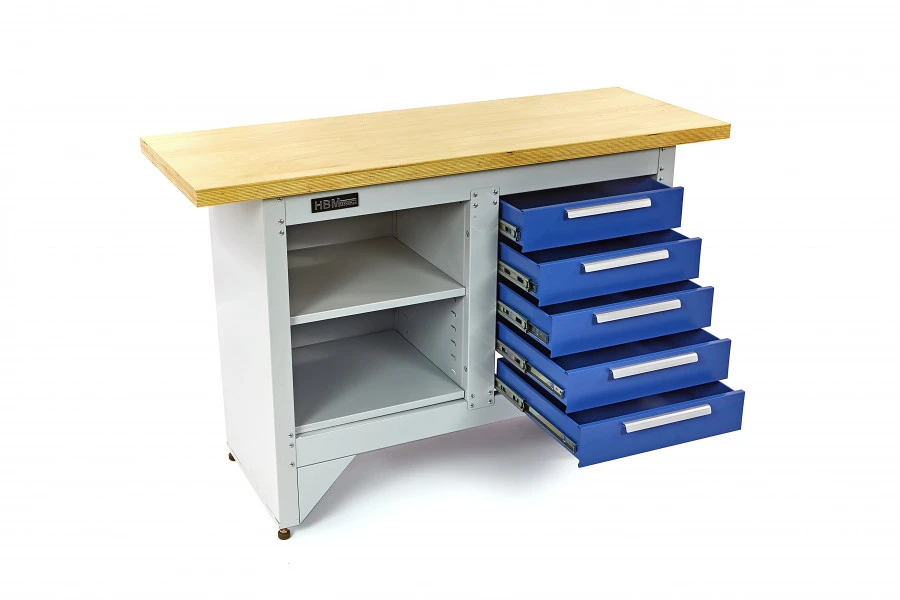 Een stevige, multifunctionele werkbank is onmisbaar voor elke vakman en enthousiaste hobbyist. Met deze kogelgelagerde werkbank van HBM beschik je in één keer over alle nodige ruimte voor het verrichten van kleine werkjes. Ook het bijhouden van tools en gereedschap is mogelijk dankzij de opbergruimtes. Het design van de bank is eenvoudig, maar voldoet aan alle verwachtingen op het vlak duurzaamheid en kwaliteit.
