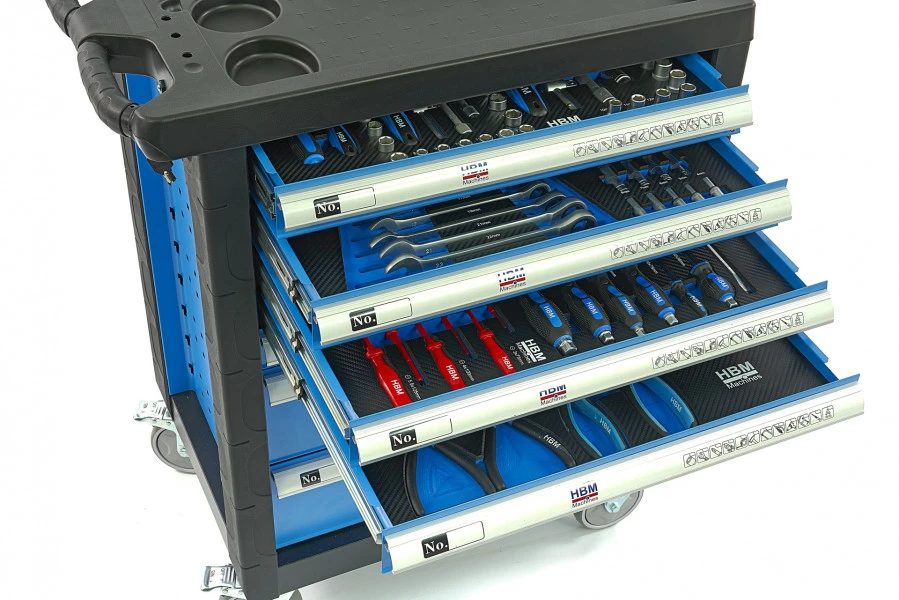 Elke professionele timmerman, loodgieter of andere professional heeft behoefte aan een overzichtelijke opslagplaats voor tools, zoals schroevendraaiers, T-verbindingsstukken, tangen en meer. Met de blauwe 154-delige gevulde gereedschapswagen van HBM geniet je van een efficiënte en betrouwbare opbergruimte voor al je gereedschap. Dankzij het relatief gewicht en een stevige handgreep verplaats je al dit gereedschap ook eenvoudig. De lades zijn afzonderlijk afsluitbaar door middel van en quick-lock sluiting.