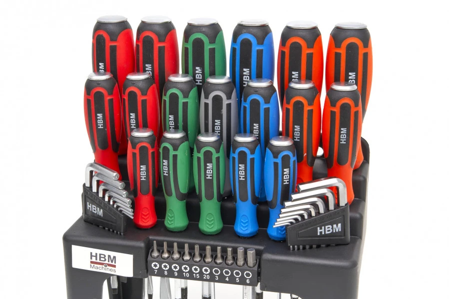 Met deze set schroevendraaiers, bitjes en inbussleutels kan je echt elke schroef en bout los- of vastdraaien. De dikke handgrepen van zacht kunststof zorgen dat je veel kracht kunt zetten en zijn bijna niet kwijt te raken. De set is gemaakt van oersterk chroomvanadiumstaal dat bijna niet slijt, waardoor de tools ook na jarenlang gebruik hun uitstekende grip op je ijzerwaren blijven houden.