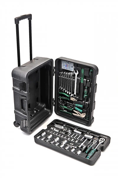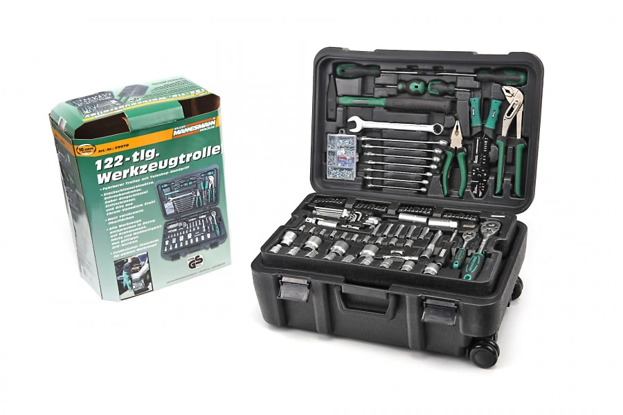 Deze gereedschapstrolley van het merk Mannesmann is het ultieme hulpmiddel van iedere professional. Deze trolley bestaat uit 122 verschillende tools en zorgt ervoor dat je altijd alle benodigde gereedschappen binnen handbereik hebt.